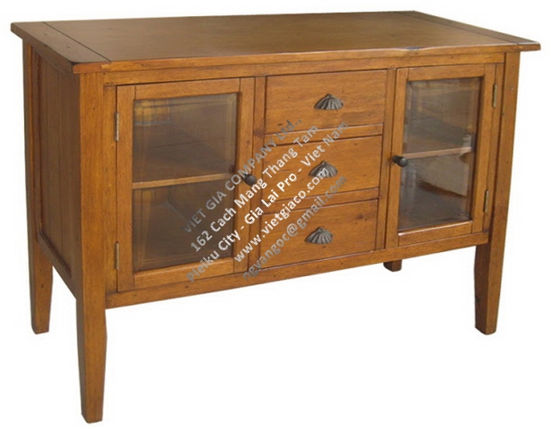 Pine Server with Clear Glass Door with 2 Removable Shelves